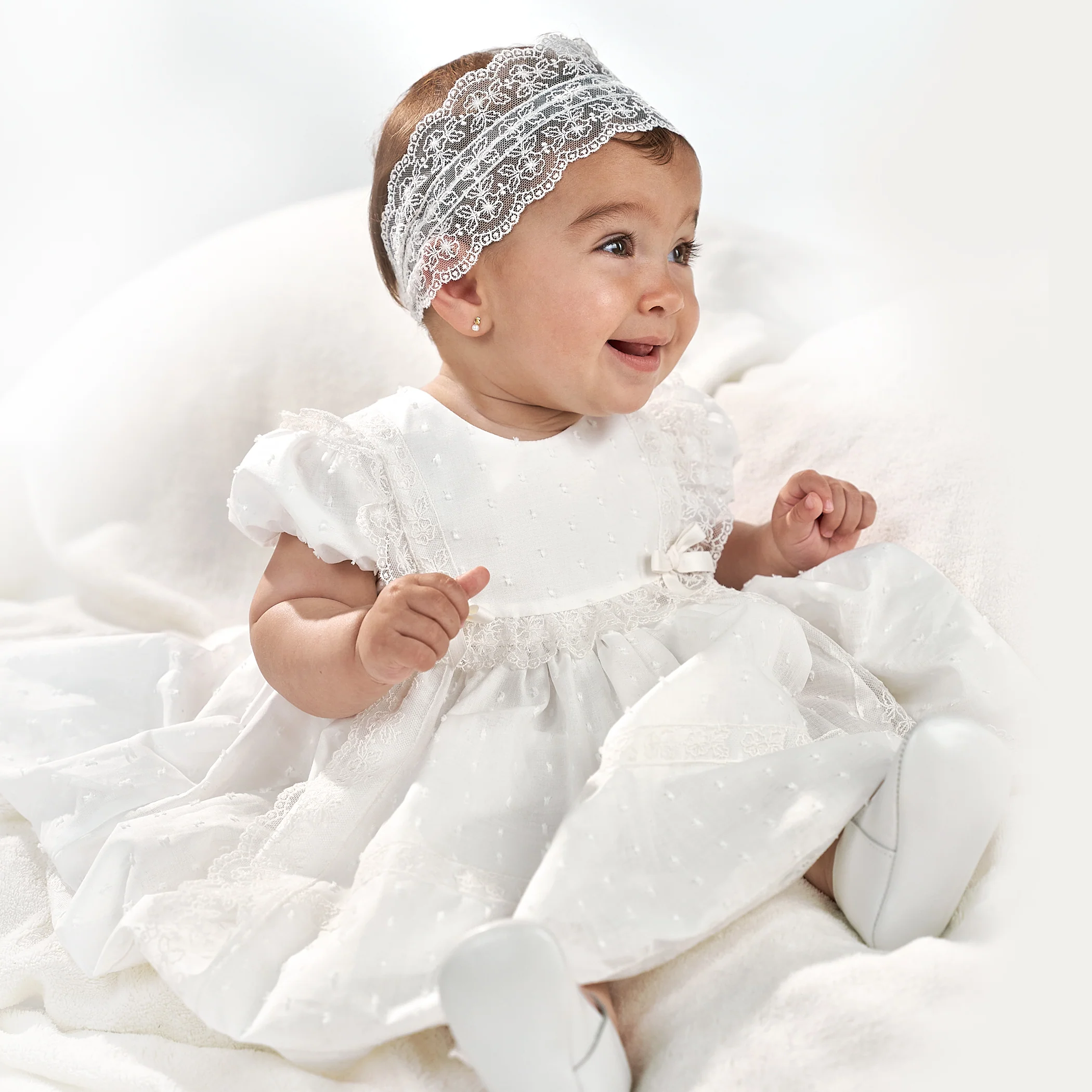 Questo abito per bambina unisce eleganza e comfort, con un collo tondo ampio e maniche a sbuffo che ne valorizzano la dolcezza. Il delicato ricamo a punto smock sul petto aggiunge un tocco artigianale unico, mentre il modello svasato garantisce libertà di movimento. Dotato di cintura con fiocco e chiusura a bottoni sul retro, è interamente foderato per un perfetto comfort sulla pelle. Realizzato in cotone e poliestere, è la scelta ideale per occasioni speciali mantenendo praticità e stile.