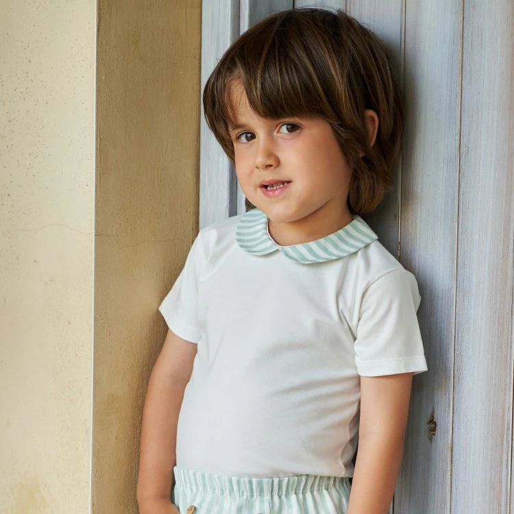 Approfitta del comfort e dello stile del nostro completo a righe misto lino. Il body con colletto a righe panna e verde in cotone jersey stretch garantisce morbidezza, mentre la coulotte-pantalone in misto cotone e lino offre un look fresco e versatile per i tuoi bambini. Unisce il meglio di entrambi i mondi per un abbigliamento comodo e alla moda.